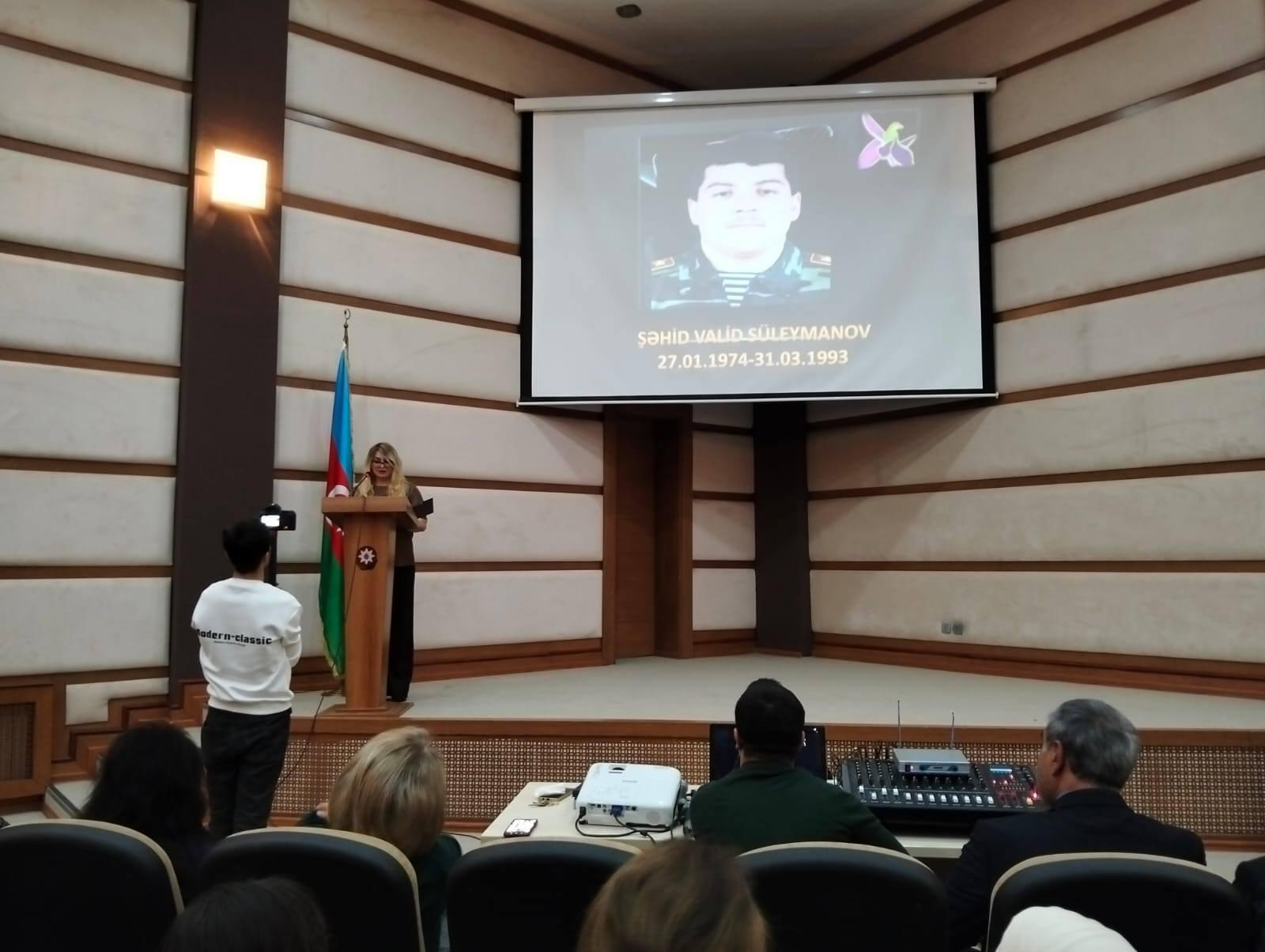 Şəhid Valid Süleymanovun əziz xatirəsinə həsr olunmuş video çarxın nümayişindən sonra digər çıxışçılar-Lənkəran Şəhər İcra Hakimiyyəti başçısının müavini Ülviyyə Əliyeva, Şürük kənd tam orta məktəbinin müəllimi Ramilə Süleymanova, “Həqiqətlər və faktlar” ictimai-hüquqi qəzetinin müxbiri Ülviyyə xanım, şəhidin bibisi Xoşqədəm Süleymanova Birinci Qarabağ müharibəsində Vətən uğrunda canından keçən qəhrəmanların Azərbaycan tarixində silinməz iz qoyduğunu qürurla söylədilər, eləcə şəhid ailələrinə göstərilən dövlət qayğısına yüksək qiymət verdilər, hər bir şəhid ailəsinin ağrısı xalqın ümumi ağrısı olduğunu xüsusi olaraq vurğuladılar.
