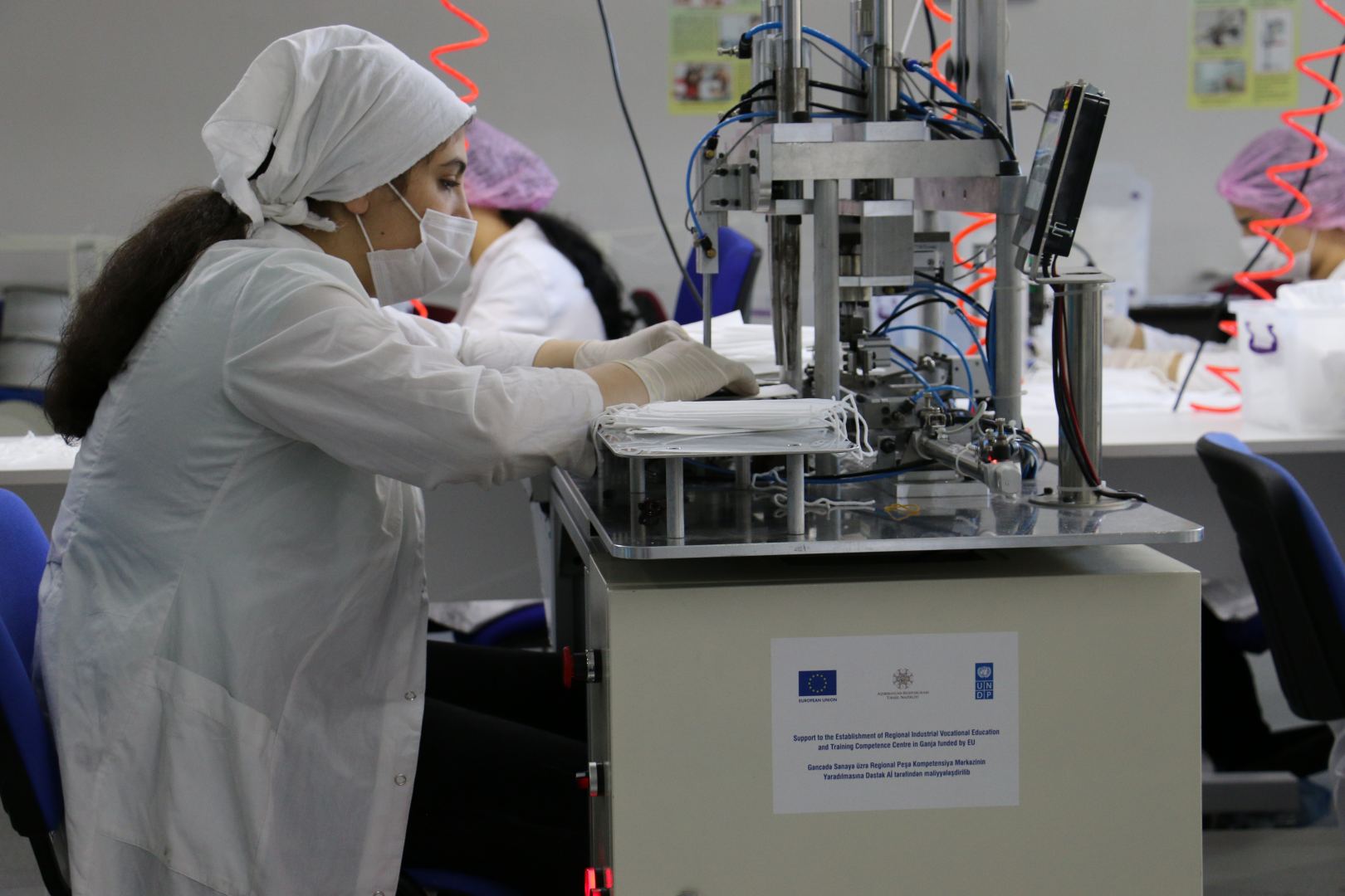 Avropa İttifaqının maliyyə dəstəyi, Birləşmiş Millətlər Təşkilatının İnkişaf Proqramı və Peşə Təhsili üzrə Dövlət Agentliyinin birgə əməkdaşlığı ilə Azərbaycanda koronavirus pandemiyası dövründə tibbi maskaların istehsalına dəstək məqsədilə bir sıra texniki avadanlıqların satınalınması həyata keçirilib.