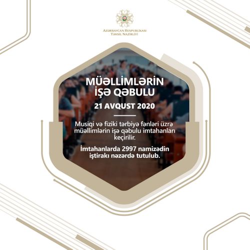 Avqustun 21-də musiqi və fiziki tərbiyə fənləri üzrə müəllimlərin işə qəbulu imtahanları keçirilir. İmtahanlarda 2997 namizədin iştirakı nəzərdə tutulub.