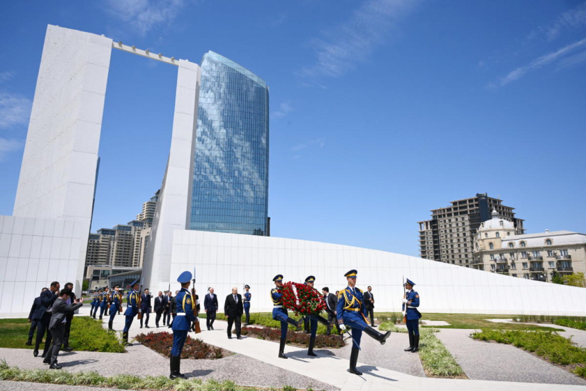 Senatın sədri parkdakı Zəfər abidəsinin önünə əklil qoyub.