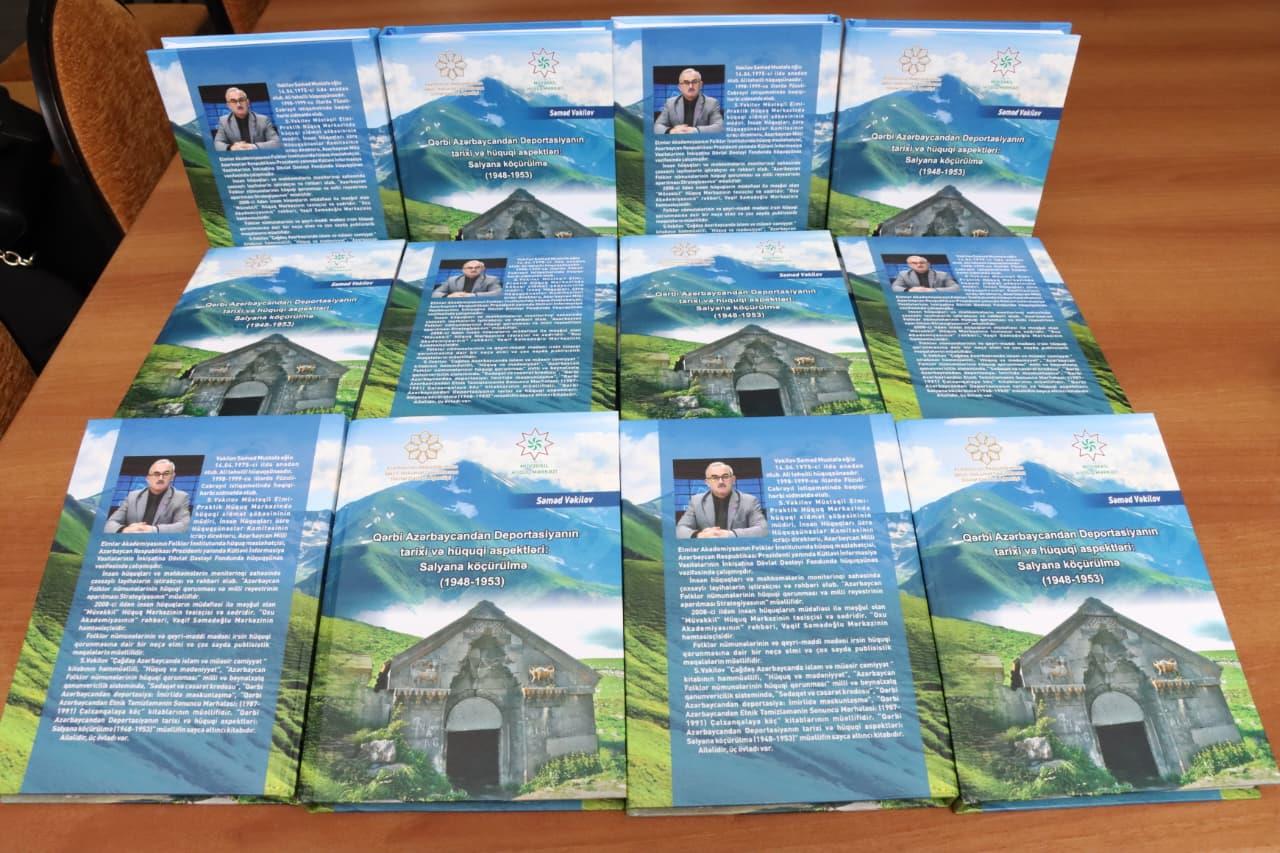 QHT.az xəbər verir ki, tədbirdə layihə çərçivəsində hazırlanmış tədqiqatçı-hüquqşünas Səməd Vəkilovun “Qərbi Azərbaycandan Deportasiyanın tarixi və hüquqi aspektləri: Salyana köçürülmə (1948–1953)” adlı kitabının təqdimatı keçirilib.