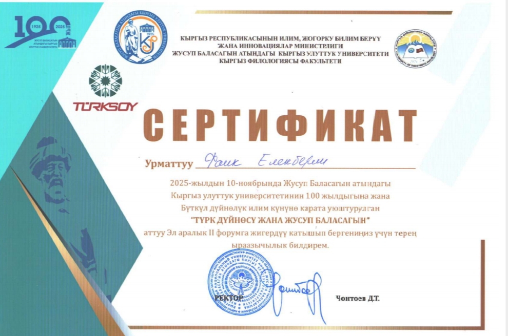 10 noyabr 2025-ci ildə Qırğızıstanıb paytaxtı Bişkekdə Yusif Balasaqunlu adına Qırğız Milli Üniversitetinin 100-cü yubileyinə həsr olunmuş “Türk dünyası və Yusif Balasaqunlu” başlıqlı beynəlxalq II. Forum keçirilib. Həmin forumda AMEA Fəlsəfə və Sosiologiya İnstitutunun Türk xalqlarının fəlsəfi fikir tarixi və müasir fəlsəfəsi şöbəsinin müdiri, fəlsəfə üzrə fəlsəfə doktoru, dosent Faiq Ələkbərli onlayn formada iştirak edib.